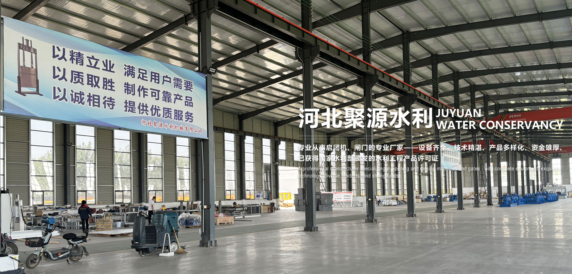 河北聚源水利機(jī)械有限公司是生產(chǎn)啟閉機(jī)、閘門的廠家,占地100余畝,職工近百人,其中高文憑工程師占比20%以上,持有各種專業(yè)證書且具有豐富經(jīng)驗(yàn)的各種技工占比60%以上。公司主營智能測控一體化閘門、智能數(shù)字螺桿啟閉機(jī)、啟閉機(jī)、鑄鐵(鋼)閘門、攔污柵、格柵、清污機(jī)、輸送機(jī)、液壓成套設(shè)備、鋼壩、液壓壩、橡膠壩、合頁壩、氣盾壩、分段節(jié)流壩、翻板門、螺旋壓榨一體機(jī)、水閘、機(jī)械排水、壓力鋼管、閥門、水利設(shè)備控制系統(tǒng)設(shè)計(jì)及零配件研發(fā)、生產(chǎn)、銷售、安裝、維修,產(chǎn)品多樣,型號齊全,質(zhì)量可靠,智能化信息化功能完善,可以根據(jù)客戶的需求定制產(chǎn)品。        公司產(chǎn)品適用于水利、電力建設(shè)、城市給水工程、污水處理、排澇泵站、農(nóng)田灌溉及水產(chǎn)養(yǎng)殖工程等。已為北京、廣東、廣西、貴州、江蘇、安徽、山西、山東、河北、河南、陜西、內(nèi)蒙古、寧夏、甘肅、湖南、湖北等全國各地提供了超過專業(yè)的設(shè)備工業(yè)和服務(wù),并獲得廣大客戶的一致好評   &n···